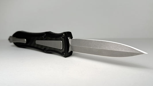 G&G Hawk Deadlock Model C OTF Pre-Owned 2022 - Stonewash CPM 20CV Double Edge & Black Aluminum w/ Carbon Fiber Inlays | Made in USA