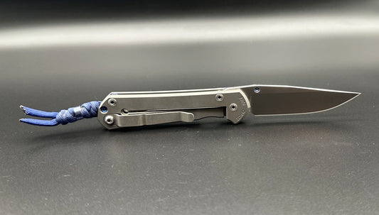 Chris Reeve Knives Small Sebenza 21 Plain Pre-Owned S21-1000 - Stonewash CPM-S35VN Drop Point Blade & 6Al4V Titanium Frame Lock Handle w/ Thumbstud & Midnight Blue Lanyard & Bead | Made in USA