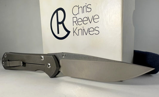 Chris Reeve Knives Sebenza 31 Large PRE-OWNED Drop Point in Stonewashed CPM S45VN | Sandblasted 6AL4V Titanium Frame Lock Handle
