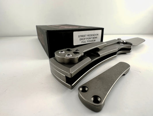 Chaves Ultramar Redencion Street PRE-OWN Full Titanium Handle w/ Satin Drop Point Blade in M390 | Skull & Standard Clips Included