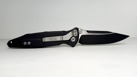 Microtech SOCOM Elite Manual 160-1 Pre-Owned - Black Coated 4.05" Bohler M390 Clip Point Blade & Black Aluminum Handle w/ Grip Inserts - Liner Lock Manual w/ Dual Thumb Studs | Made in USA