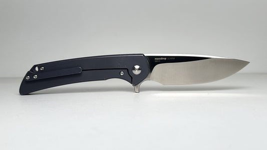Massdrop DROP x Ferrum Forge Crux MDX-19710-6 #JL0056 Pre-Owned - Satin 3.4" CPM-S35VN Drop Point Blade & Blue Titanium Handle - Ti Frame Lock Flipper | Made in China by WE Knives