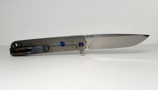 Kizer | Uli Hennicke T1 Ki3490 Pre-Owned - Stonewash 3.25" CPM-S35VN Drop Point Blade & 6AL4V Titanium Handle - Ti Frame Lock w/ Dual Studs | Made in China