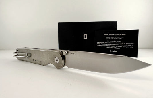Peter Rassenti Custom Paysan 2.0 Pre-Owned LNIB PRCPYSN20ZRM3 - Stonewash 3.12" CTS-XHP Sheepsfoot Blade & Milled Titanium Handle w/ Zirconium Collar - Ti Frame Lock | Made in Canada