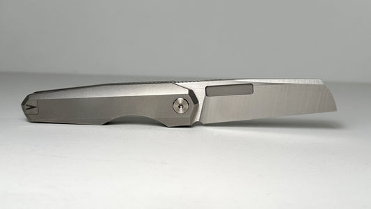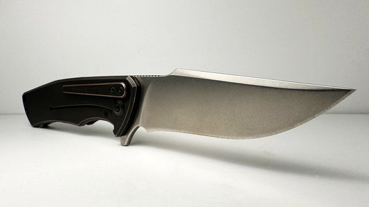 Zieba Knives Model S1 Frame Lock Pre-Owned NO BOX | Stonewash CPM S35VN Recurve Blade & Dark Bronze Titanium Handle - Flipper on Ball Bearings w/ Reversible Tip-Down Pocket Clip | Made in USA
