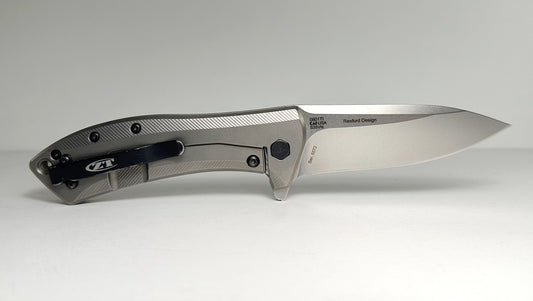 Zero Tolerance | Todd Rexford 0801TI Pre-Owned - Stonewash 3.5" CPM-S35VN Drop Point Blade & 3D Machined Titanium Handle - Frame Lock Folder w/ Flipper Tab | Made in USA