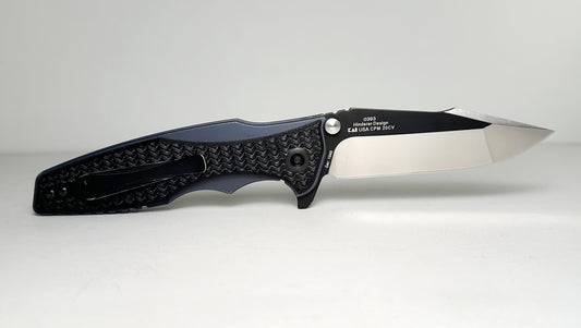 Zero Tolerance | Rick Hinderer 0393 Pre-Owned - Two-Toned 3.5" CPM-20CV Harpoon Point Blade - Blue Ano Titanium Handle w/ Machined Black G-10 Overlays - KVT Frame Lock Folder w/ Dual Studs & Flipper Tab | Made in USA