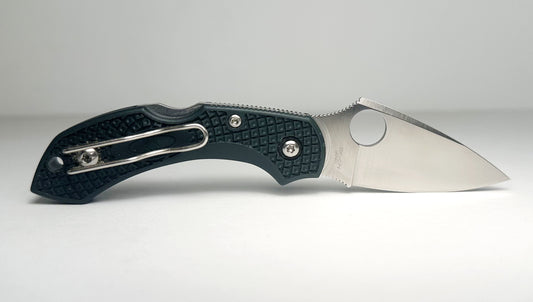 Spyderco Siren C247GP Pre-Owned - Satin LC200N Drop Point Blade & Black G-10 Scales w/ Blue Liners - Reversible Wire Pocket Clip | Made in U.S.A.
