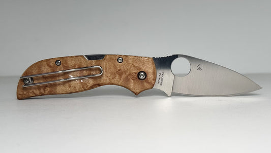 Spyderco Chaparral Maple C152WDP Pre-Owned - Satin 2.8" CTS-XHP Leaf-Shaped Blade & Birdseye Maple Wood Handle Scales - Lockback w/ Round Hole | Made in Taiwan