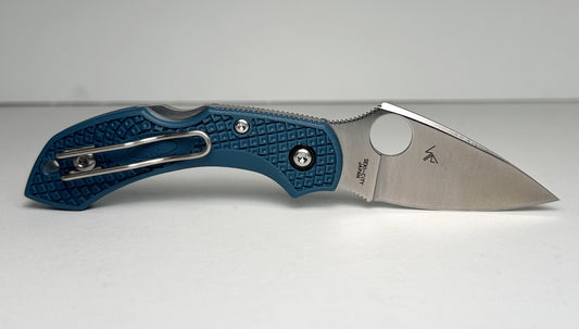 Spyderco Dragonfly 2 C28FP2K390 Pre-Owned - Satin 2.3" Bohler K390 Drop Point Blade & Blue FRN Handle Scales - Lockback Manual w/ Round Thumb Hole | Made in Japan