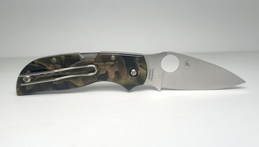 Spyderco Chaparral Raffir Noble C152RNP Pre-Owned - Satin 2.8" CTS-XHP Leaf Shaped Blade & Raffir Noble Epoxy Resin Composite Handle Scales - Lockback Folder w/ Round Thumb Hole | Made in Taiwan