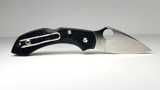 Spyderco Dragonfly 2 C28PBK2 Pre-Owned -Satin 3.45" VG-10 Leaf-Shaped Drop Point Blade - Black FRN Handle Scales - Lockback Manual w/ Round Thumb Hole | Made in Japan
