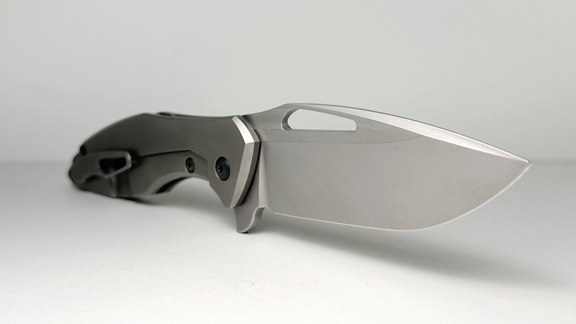 The blade on this model is stonewashed, coming in CTS-XHP stainless steel, with an elongated blade hole. The pivot and hardware are coated black, and it comes with a right-handed tip-up titanium pocket clip attached. It also comes with original foam-insert box.