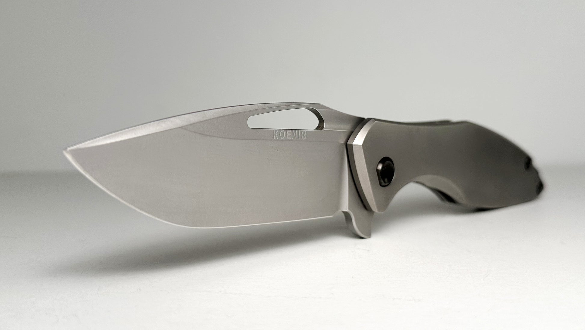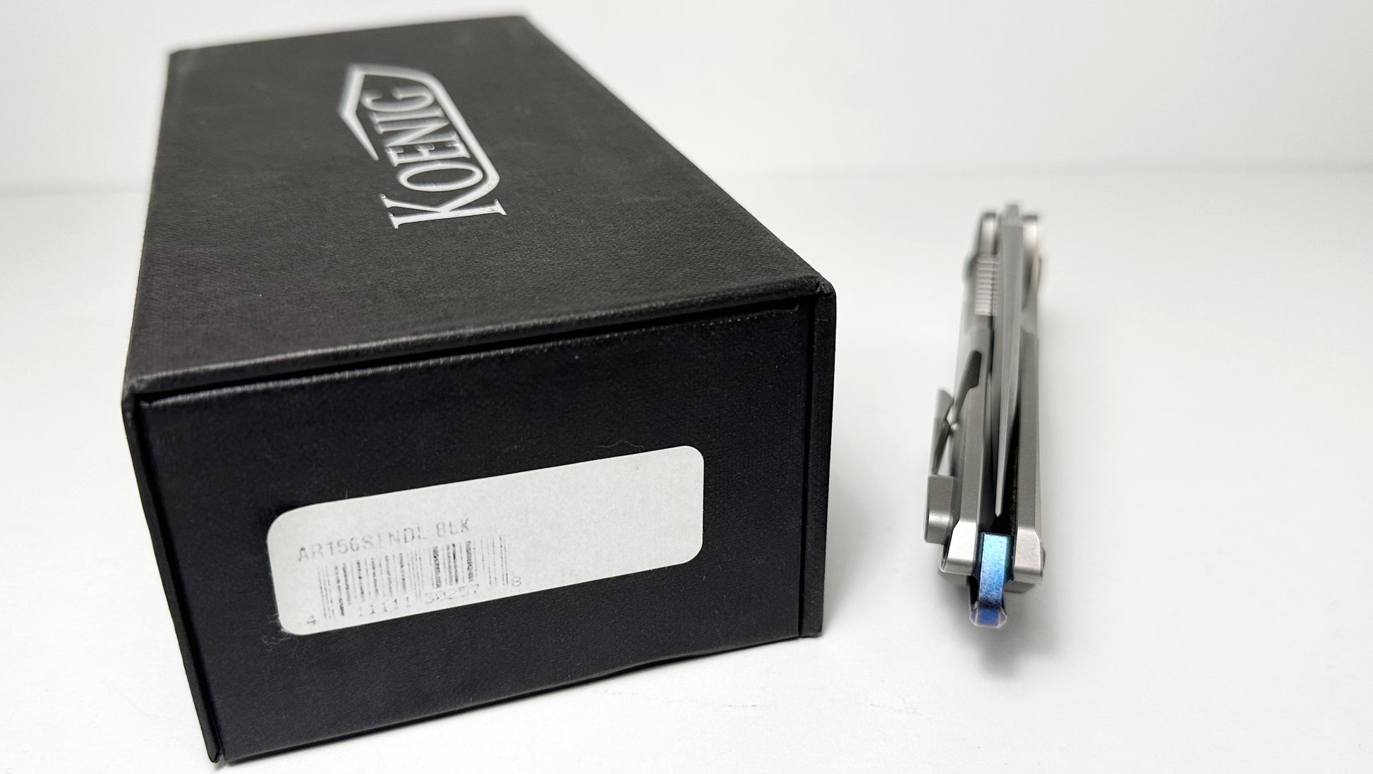 Koenig Knives are known for putting out incredibly high-quality, innovative, and consistently reliable products. This Arius fits that narrative extremely well. The standard model frame lock flipper, this guy comes with a 3D contoured 6AL4V titanium handle and a blue anodized titanium backspacer. My research showed me that this is indeed a Gen 2 Arius, but if you have any information otherwise that you would like to share, please feel free to email me at thetwoloonsllc@gmail.com or DM me on instagram. I'm not 100% familiar with these details on the Arius. The inside of the handle shows AR.KO. 2-4.